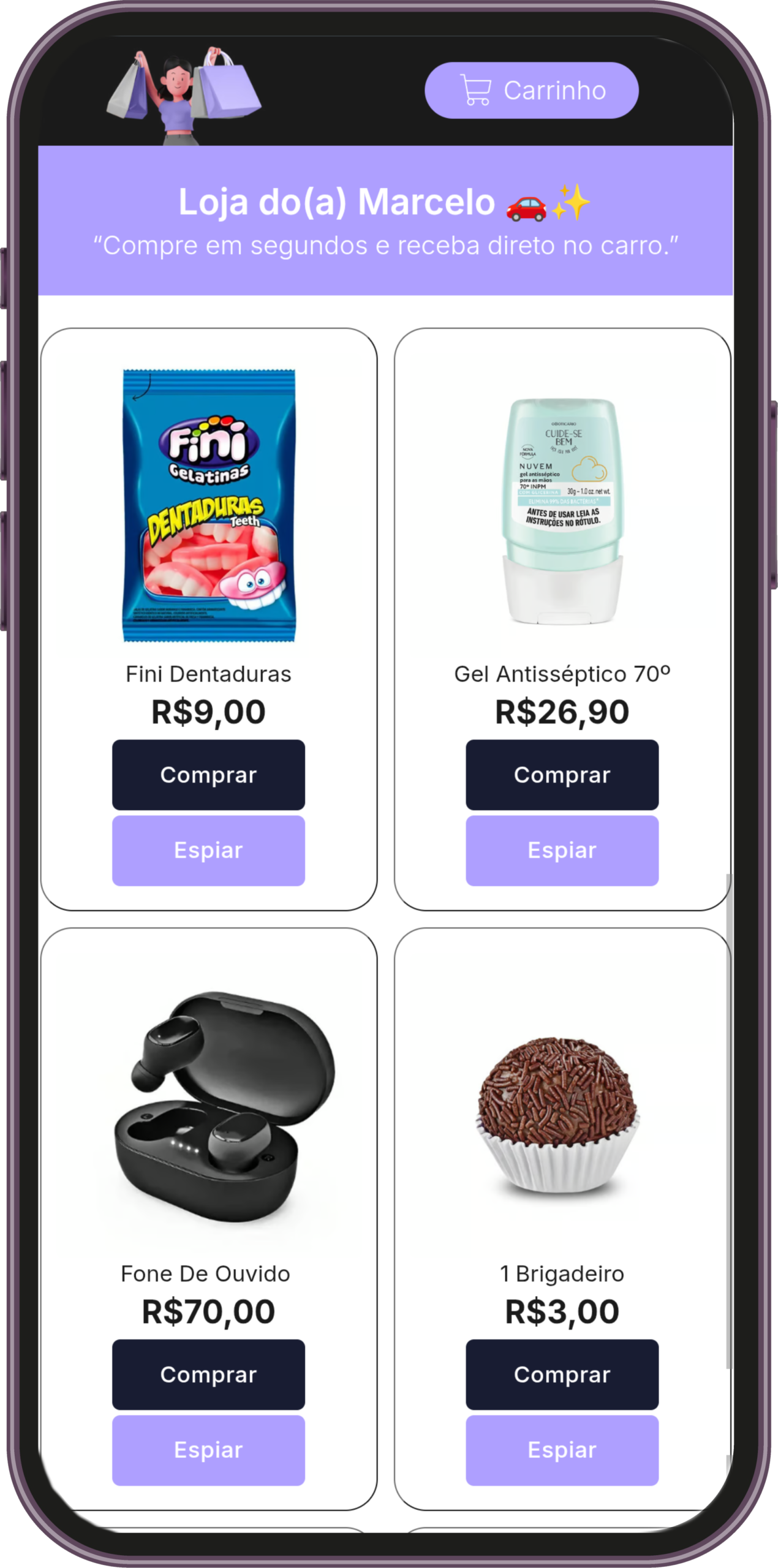 Vender produtos físicos direto do carro (snacks, balas, carregadores, perfumes e mais).